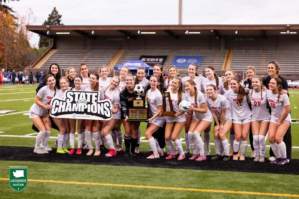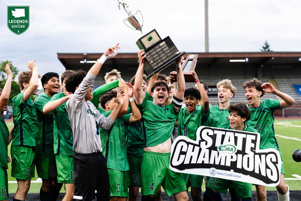 Woodinville wins its first state boys’ championship following a 2-1 victory over Hazen in the 4A final in Puyallup. After the Highlanders’ Vitaly Polyukh ties it midway through the first half on a deep cross from Stephen Cruz, the towering Cooper Conley scores his second goal and 41st of the season with 68 seconds remaining in regulation. A junior, Conley had scored Woodinville’s semifinal overtime winner vs. Chiawana and the opener vs. Hazen, both on free kicks.