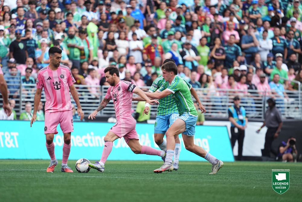 A day after Seattle coach Brian Schmetzer notes the contrast of his team’s homegrown talent facing Inter Miami’s star-studded lineup, the Sounders offer fans a free Paul Rothrock jersey in exchange for any Lionel Messi jersey. Fans respond by forming a long line outside the Lumen Field Pro Shop, and the trade-in maximum of 100 shirts is reached in just over an hour before the teams’ Leagues Cup final.
