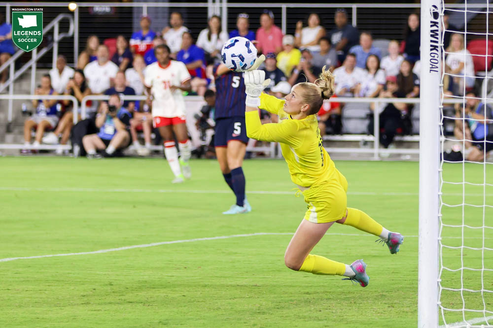 Nikki Stanton of North Bend factors in the first goal of Canada's inaugural Northern Super League final, with the Vancouver Rise clipping host AFC Toronto, 2-1. Formerly a midfielder for the Sounders Women and Reign, Stanton steers her corner kick in the 54th minute to the near post, where it deflects off a defender for an own goal to pull Vancouver level.